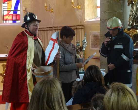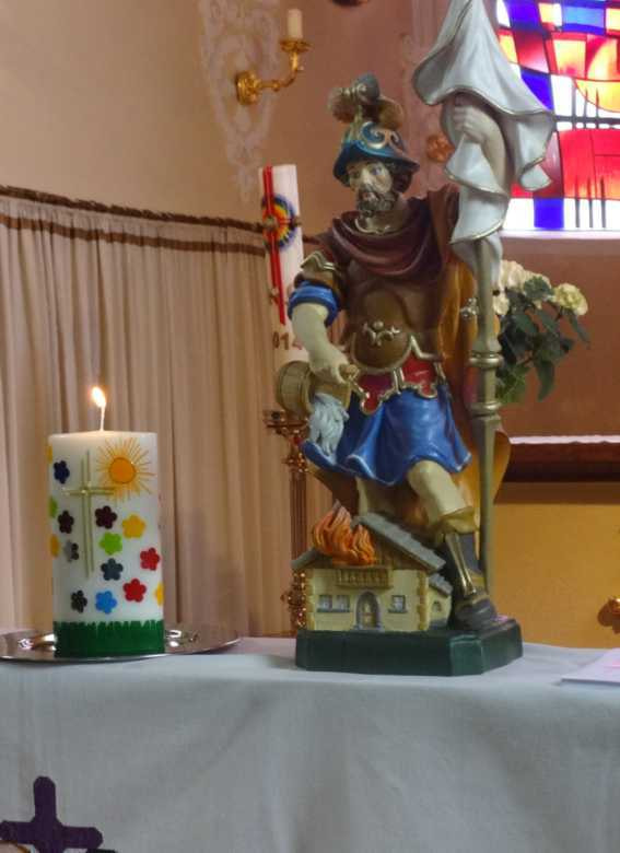 Der heilige Florian ist der Schutzpatron der Feuerwehr. Aus diesem Grund haben wir einen Feuerwehrmann eingeladen und den Heiligen Florian von früher zum Vergleich dargestellt. Der Hl. Florian trug einen Umhang, einen Helm und eine weiße Fahne mit einem roten Kreuz. Auch damals war der Hl. Florian schon sehr verbunden mit der Kirche. Zum Vergleich lernten wir die Ausrüstung des heutigen Feuerwehrmannes kennen und er erklärte uns wofür er Helm, Handschuhe und Kleidung braucht.