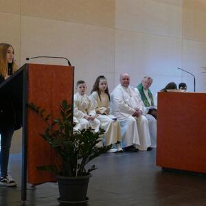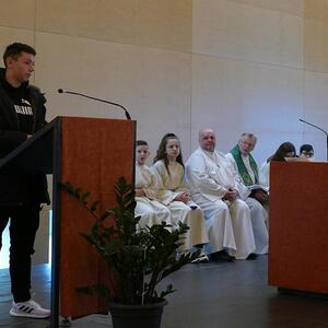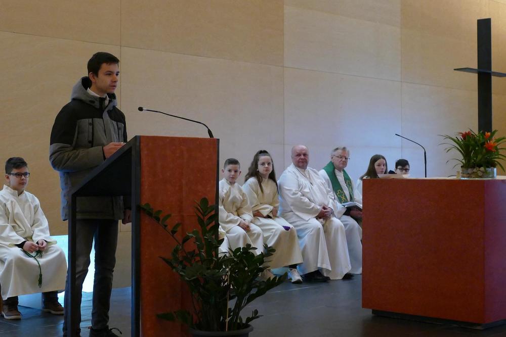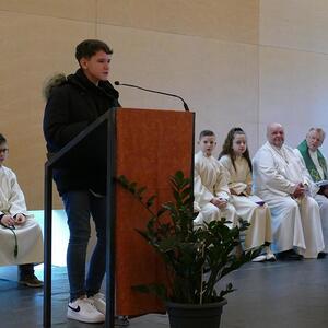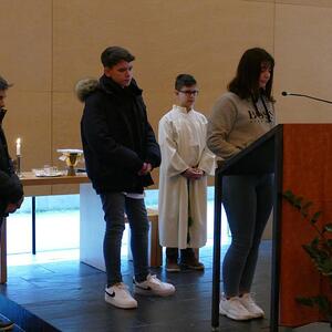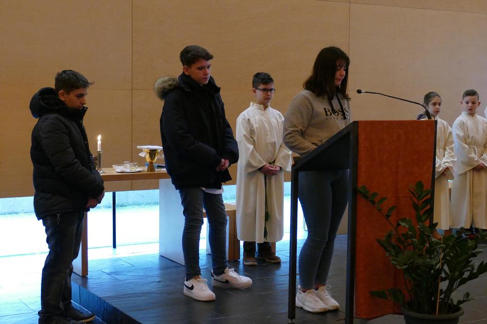 Unsere Firmlinge: Alen Andrijanic, Mathias Cillik, Julia Höchfurtner, Miriam Kaltenberger, Diego Kostic, Sophie Putz, Johannes Rosenauer und Leon Weidinger stellten sich in kurzen Statements selbst vor und beteiligten sich an der liturgischen Gestaltung des Gottesdienstes durch persönliche Texte im Kyrie, in der Lesung und in den Fürbitten.